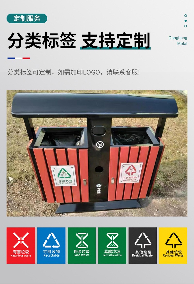 溫州東鴻金屬制造有限公司提供的大容量商用環(huán)衛(wèi)垃圾箱,鍍鋅板室外景區(qū)分類垃圾箱,公園環(huán)衛(wèi)果殼箱可用于小區(qū)多分類垃圾箱,并適用于小區(qū)、工廠、餐飲、城市街道、各類廣場、企業(yè)單位、花園、公園、學(xué)校、碼頭、風(fēng)景旅游區(qū)等公共場所,可按客戶的需要定投產(chǎn)品尺寸、材質(zhì)和印刷內(nèi)容,咨詢電話0577-88321654。