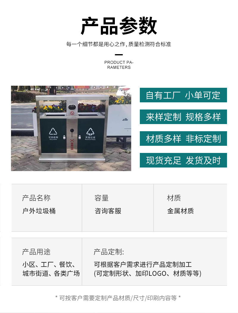 溫州東鴻金屬制造有限公司提供的不銹鋼商用戶外方形環(huán)衛(wèi)垃圾箱,適用于小區(qū)、工廠、餐飲、城市街道、各類廣場、企業(yè)單位、花園、公園、學校、碼頭、風景旅游區(qū)等公共場所,可按客戶的需要定投產(chǎn)品尺寸、材質和印刷內(nèi)容,咨詢電話0577-88321654