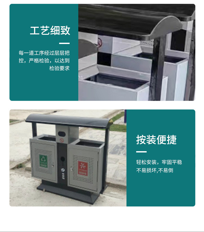 鍍鋅板大號環(huán)衛(wèi)垃圾箱 室外雙桶分類垃圾箱 街道小區(qū)公共垃圾箱適用于小區(qū)、工廠、餐飲、城市街道、各類廣場、企業(yè)單位、花園、公園、學校、碼頭、風景旅游區(qū)等公共場所,可按客戶的需要定投產品尺寸、材質和印刷內容